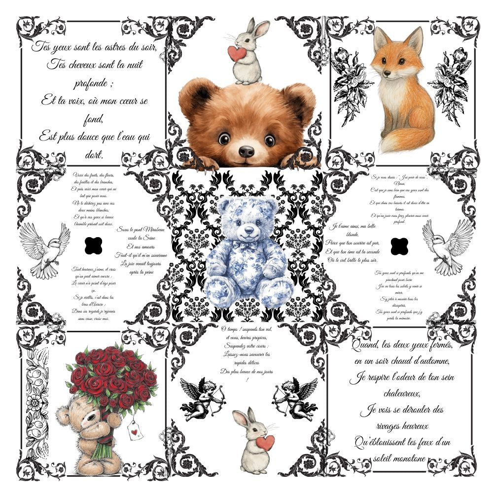 certaines comportent plusieurs petits vers de poésie, tandis que d'autre en ont que un seul en leur centre.
